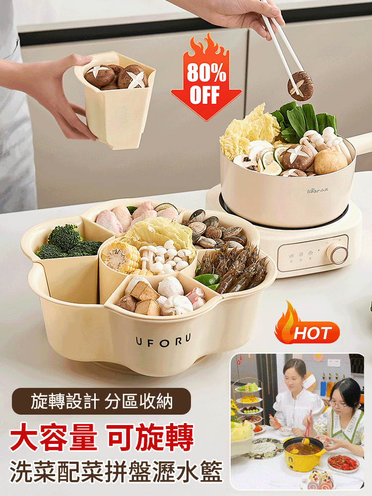 大容量可旋轉洗菜配菜拼盤瀝水籃