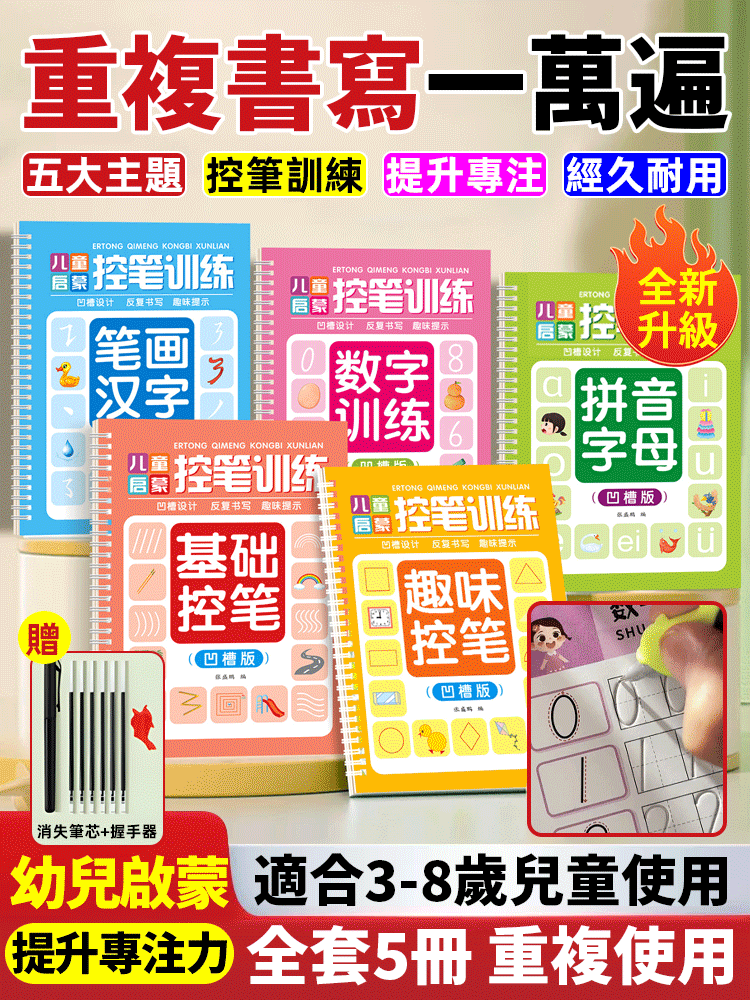 【重複書寫一萬遍】魔法凹槽控筆練字本